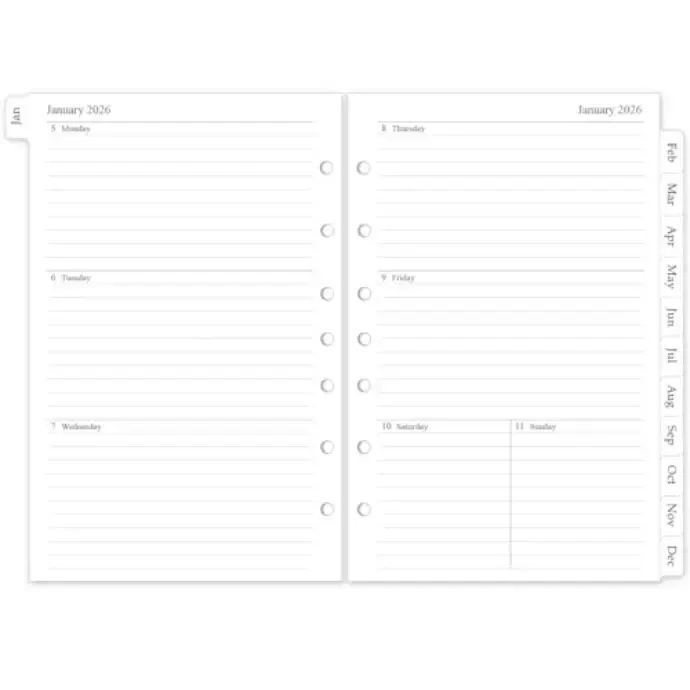 2026 Weekly & Monthly Planner Refill, A5 Medium Planner Inserts with Monthly Tabs, Size 4, 5.5″x8.5″, Jan. 2026 – Dec. 2026, 7-Hole Punched