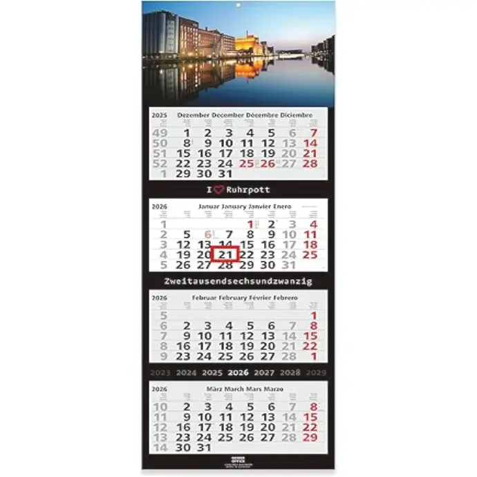 3 Month Calendar 2025 Wall Calendar with Slider – “INFO” Calendar 2025 Wall Calendar 30 x 50 cm Large – Office Calendar