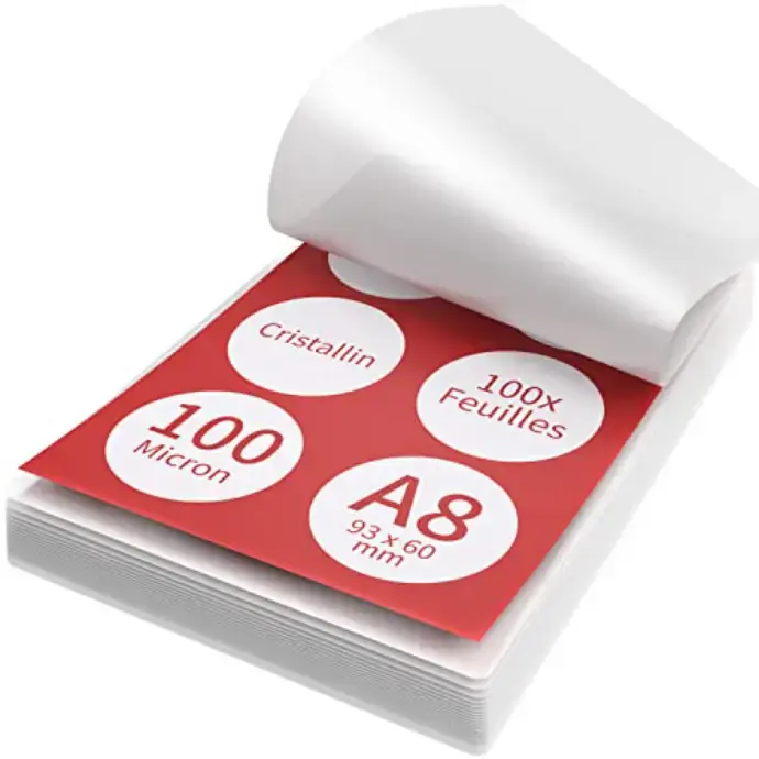 ACROPAQ Laminating Pouches A8-100 Pack, 200 Micron (2 x 100 Micron), for Business Cards, Glossy Finish, Premium Quality, Rounded Corners, Ideal for Craft Materials and signages – 18017
