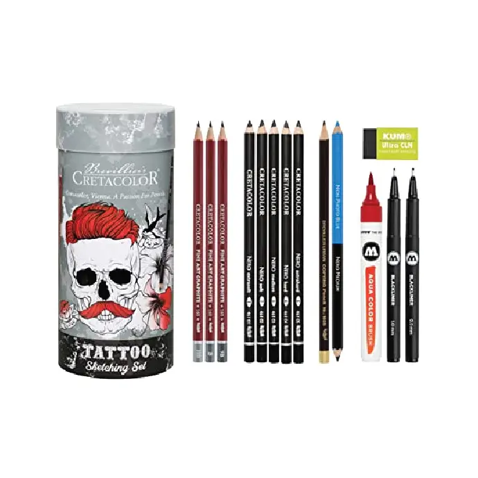 Cretacolor Tattoo Sketching Set, Cylinder Tin Can 14 Piece