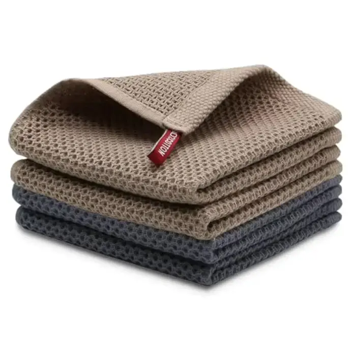 Kitchen Towels Set of 4 – 100% Cotton Ultra Absorbent Dish Towels, Quick Dry Lint-Free Reusable Cloths for Drying Dishes, Cleaning Counters, Wiping Spills & Everyday Kitchen Use