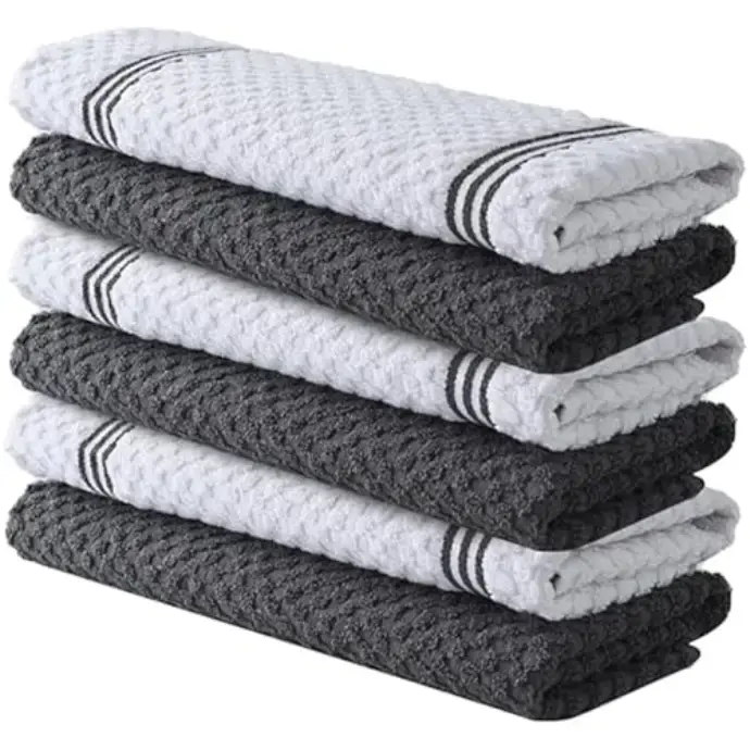 Kitchen Towels Set of 6 – Ultra Absorbent Microfiber Cotton Blend Dish Towels, Quick Dry Lint-Free Reusable Cleaning Cloths for Dishes, Counters, Glassware & Everyday Use