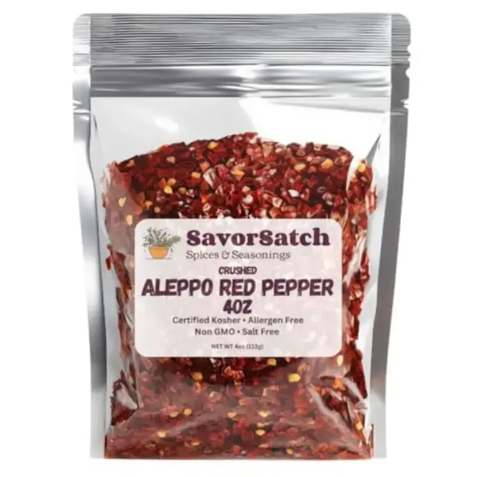 SavorSatch Aleppo Red Pepper Flakes – 4 oz Resealable Pouch | Certified Kosher, Moderately Spicy Halaby Chili Pepper | Authentic Turkish Flavor | Crushed Red Capsicum annuum for Cooking and Seasoning
