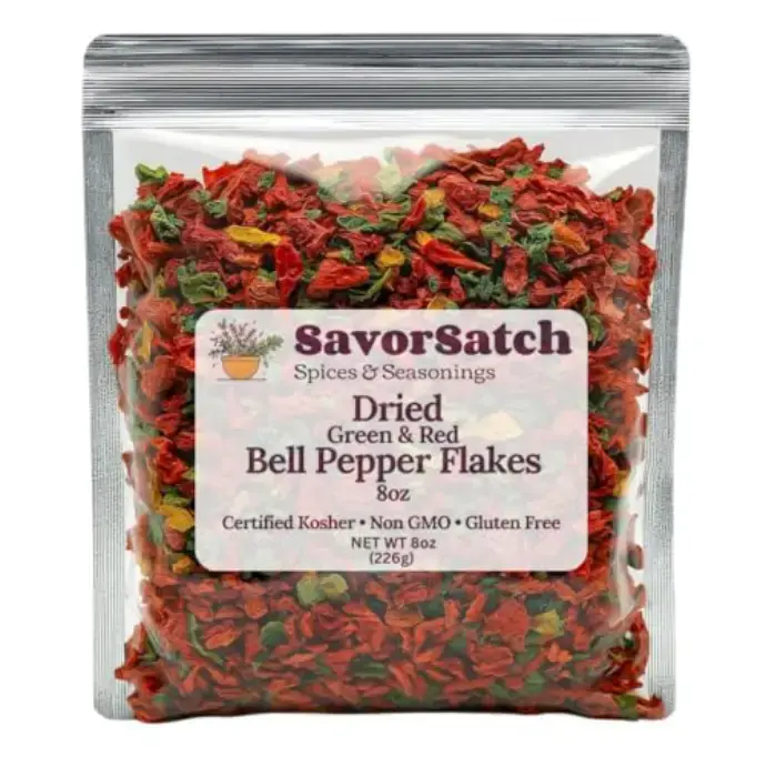 SavorSatch Dried Red & Green Bell Pepper Flakes – 8oz Resealable Pouch | Dehydrated, Certified Kosher, Non-GMO | Perfect for Cooking, Soups, Stews, Camping, Emergency Food Supply