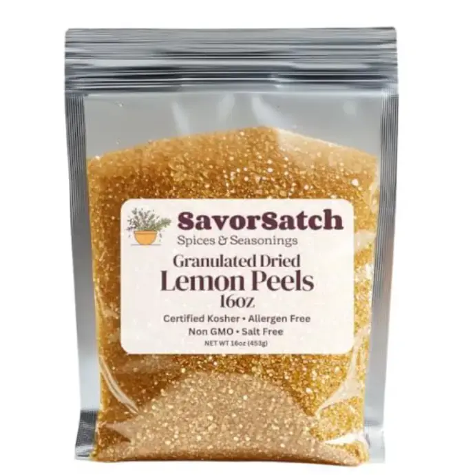 SavorSatch Lemon Peel Granules – 16oz Resealable Pouch | Certified Kosher, GMO-Free, Allergen-Free | Bulk Citrus Zest for Seasoning, Rubs, Marinades, Dressings