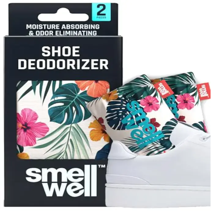 SmellWell Active Odour Remover, Shoe Deodorant, Bamboo Activated Carbon Odour Absorber, Moisture Absorber for Shoes, Bags and Against Sweaty Feet, Annoying Odours, Hawaii Floral, 1 Pair, 2 x 50 g
